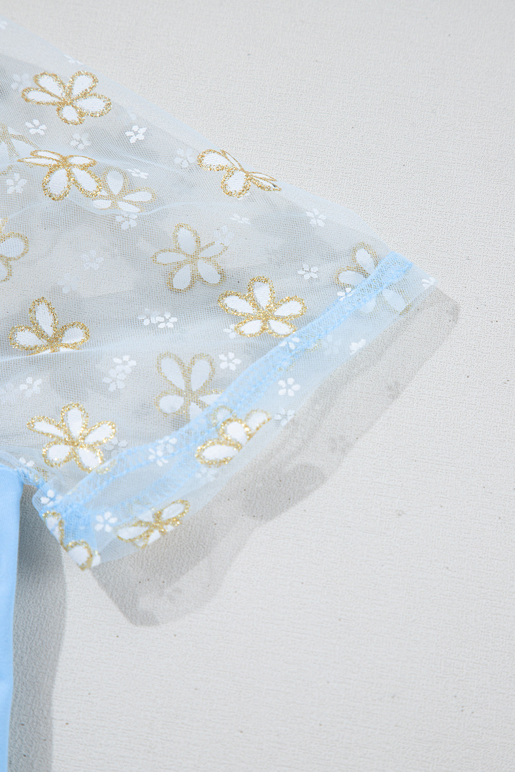 Beau Blue Floral Mesh Puff Sleeve Crew Neck Top