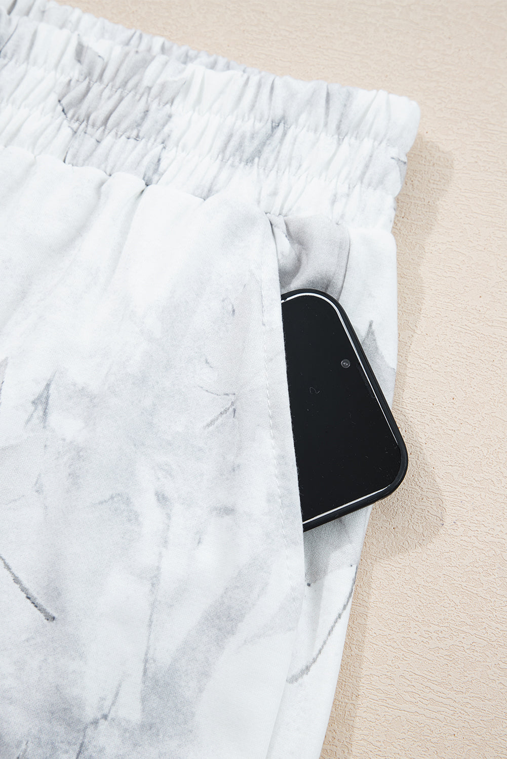 Beige Camo Print Pullover Top and Elastic Waist Casual Short Set