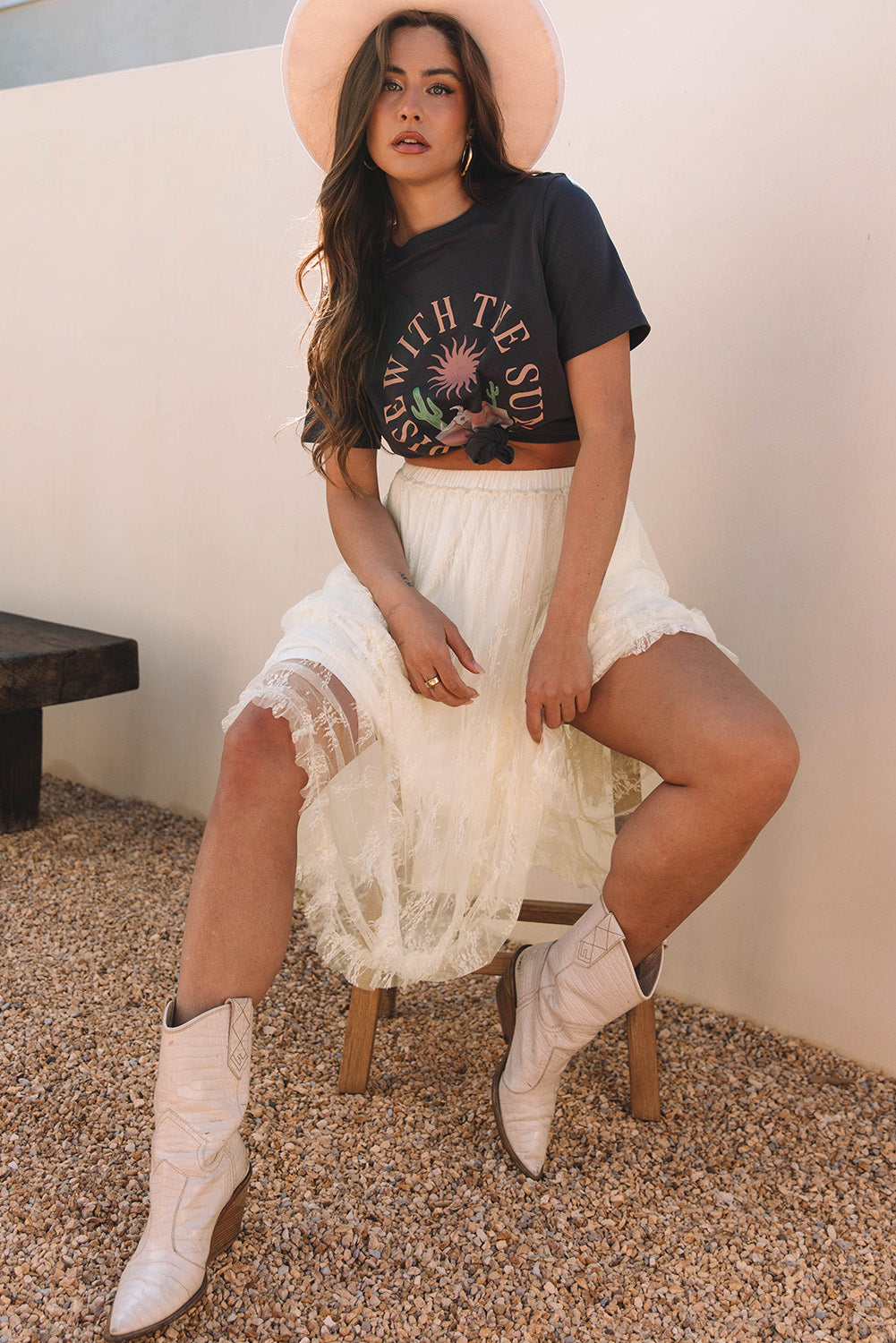 - Made by lace, this long skirt is sophisticated and elegant.