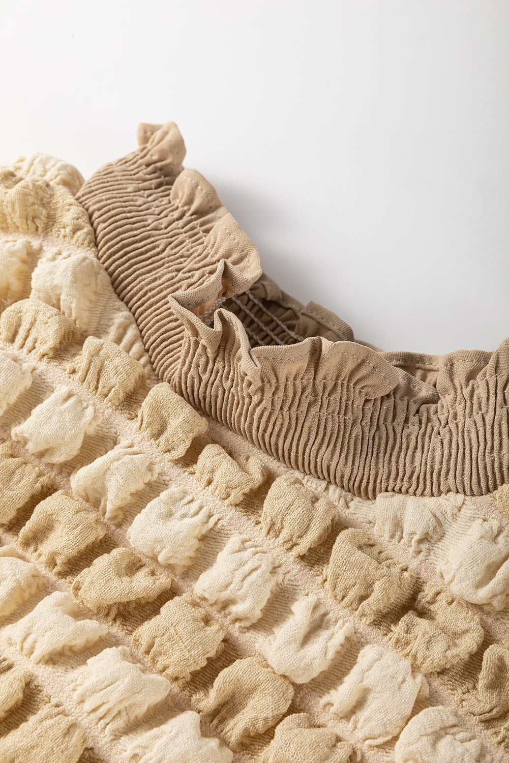 - This ruffled blouse creates a soft and romantic aesthetic.