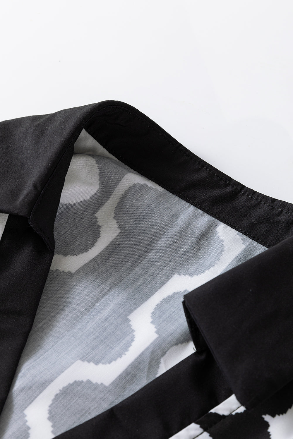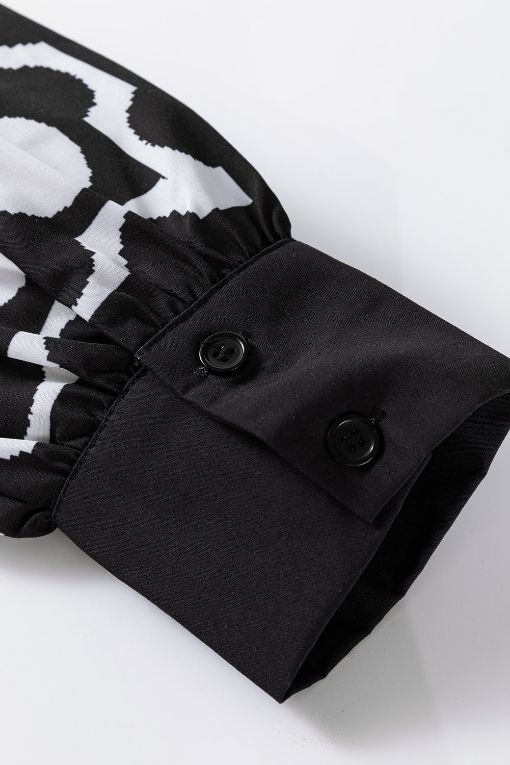 Black Polka Dot Floral Printed V Neck Long Sleeve Shift Mini Dress