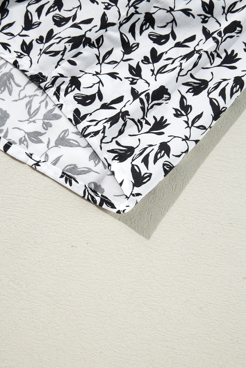 Black Printed Lace Detail Floral Puff Sleeve Fall Shirt
