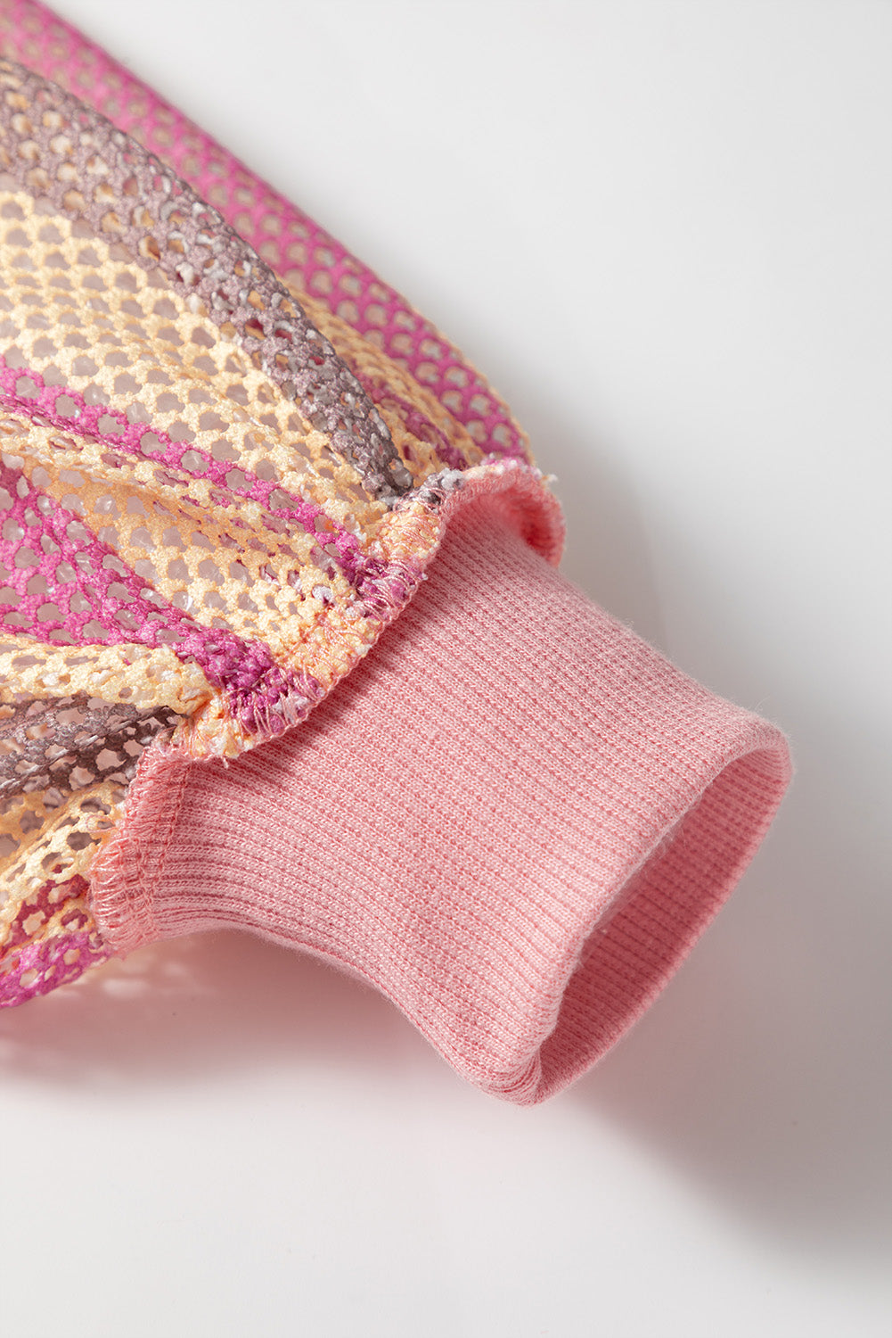Blossom Striped Mesh Sleeve Patchwork Exposed Seam Casual Pullover Top