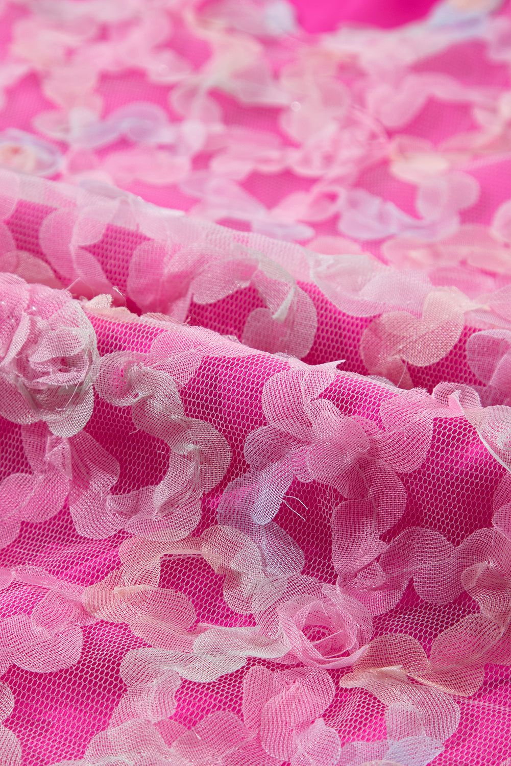 Bonbon Flowery Mesh Short Puff Sleeve Blouse
