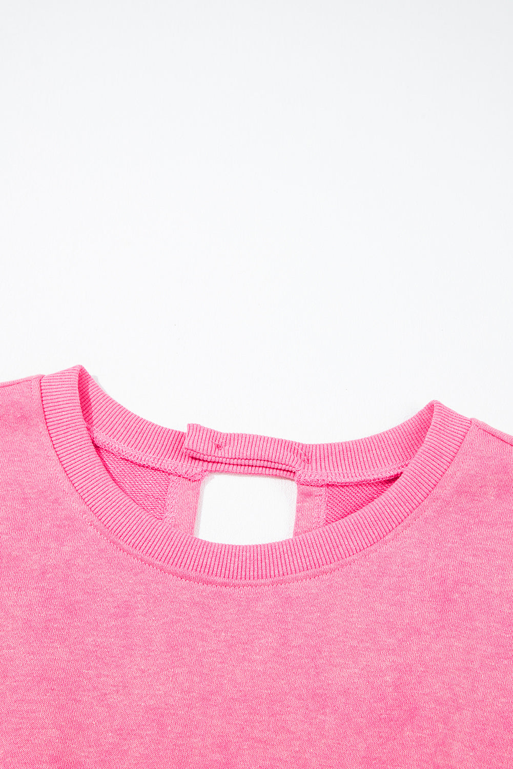 Bonbon Mineral Wash Drawstring Elastic Waistband Hollow Out Back Short Sleeve Romper