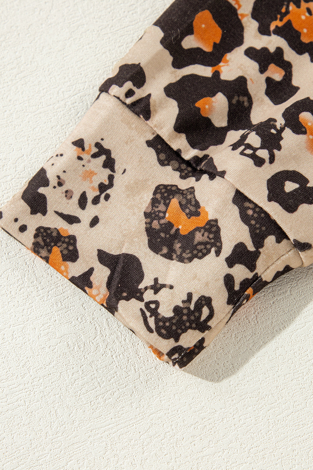 Brown Leopard Bleached Raglan Sleeve Pullover Sweatshirt