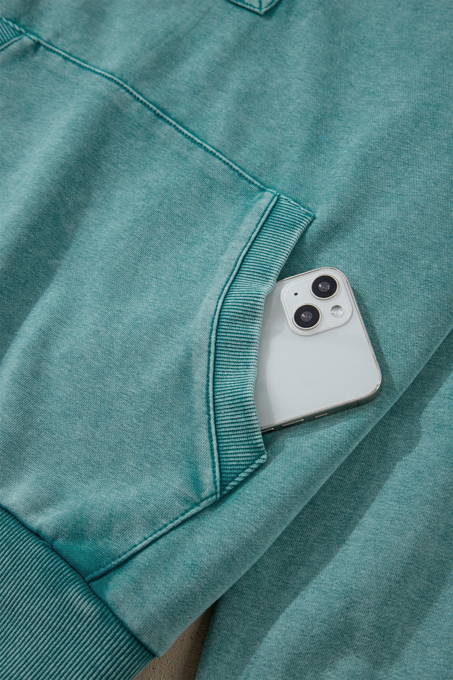 - The mineral wash hue gives this casual hoodie a unique vintage silhouette.
