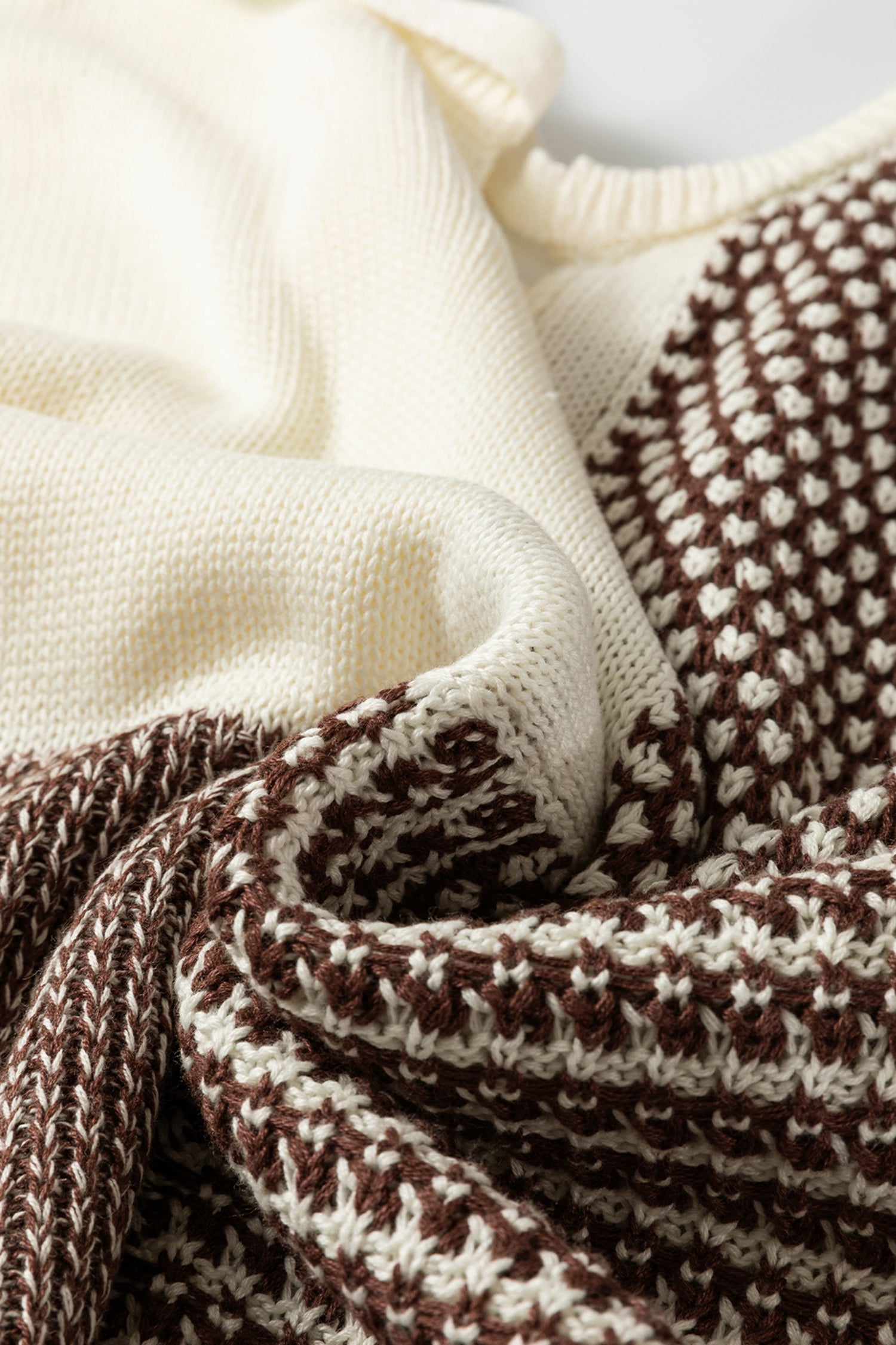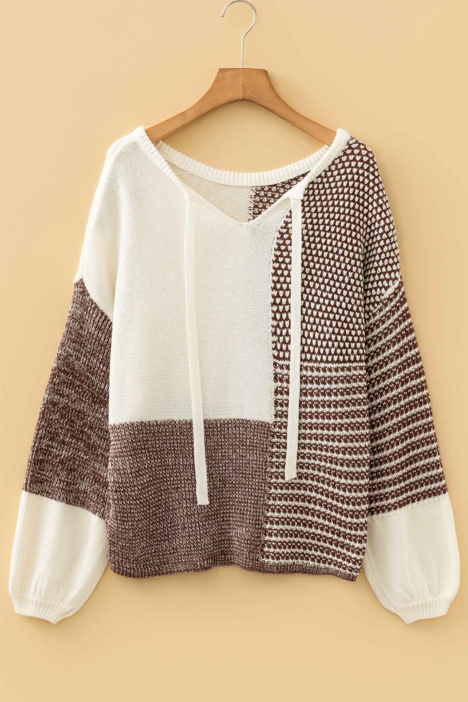 Dark Khaki Color Block Back Tie Drop Shoulder Loose Sweater