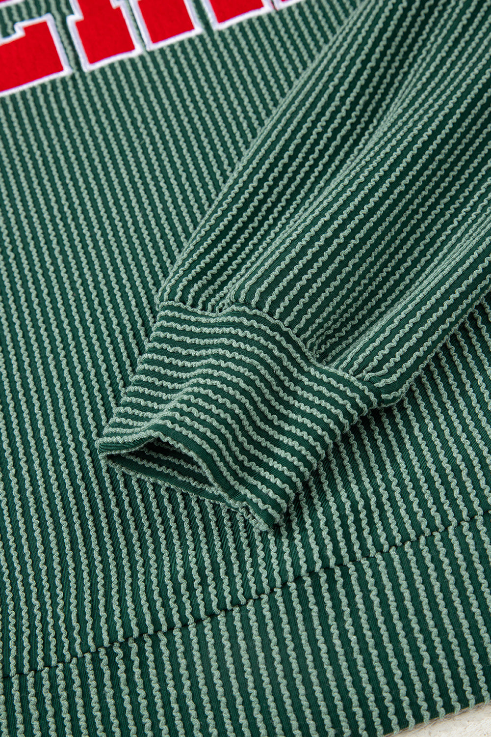 Fiery Red Twisted Rib Outlined Merry Letter Graphic Loose Long Sleeve Top