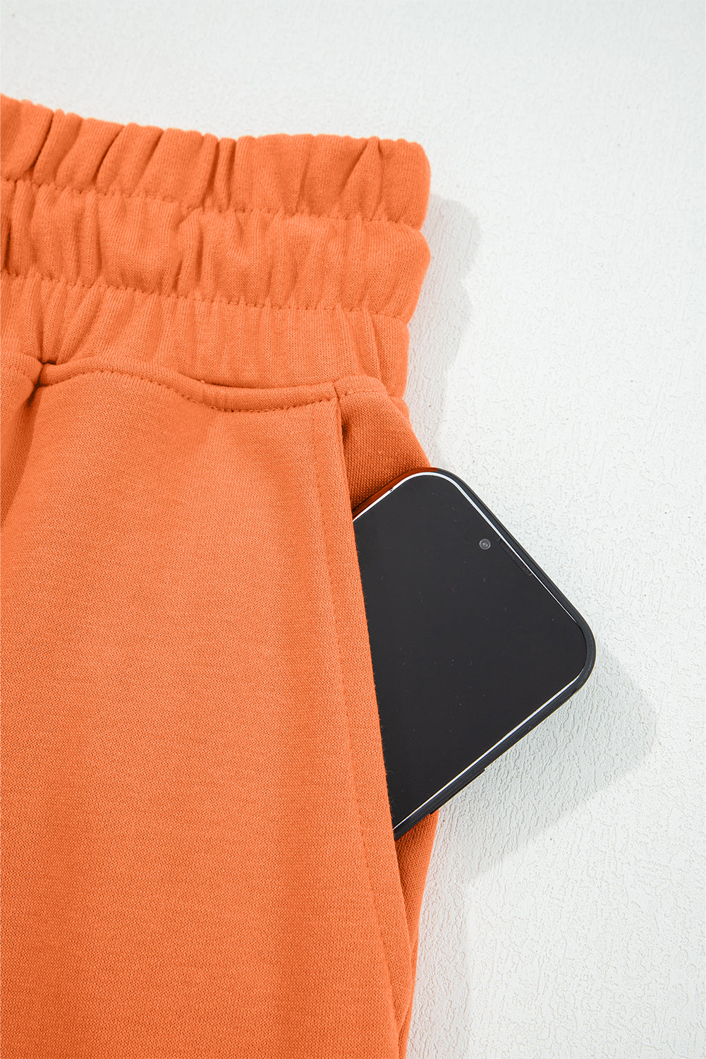 Flamingo Drop Shoulder Puff Sleeve Crop Pullover Drawstring Wide Leg Pants Set