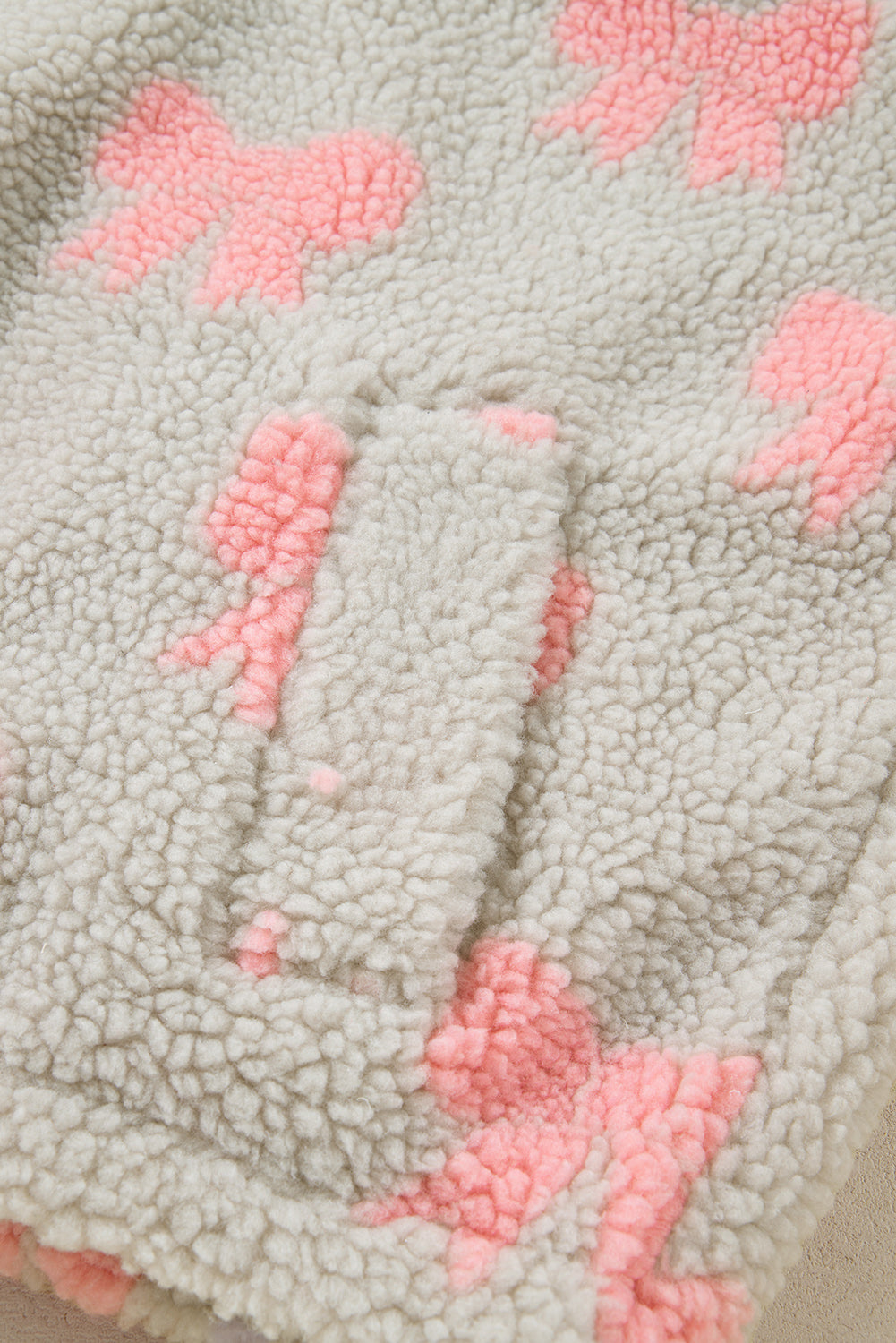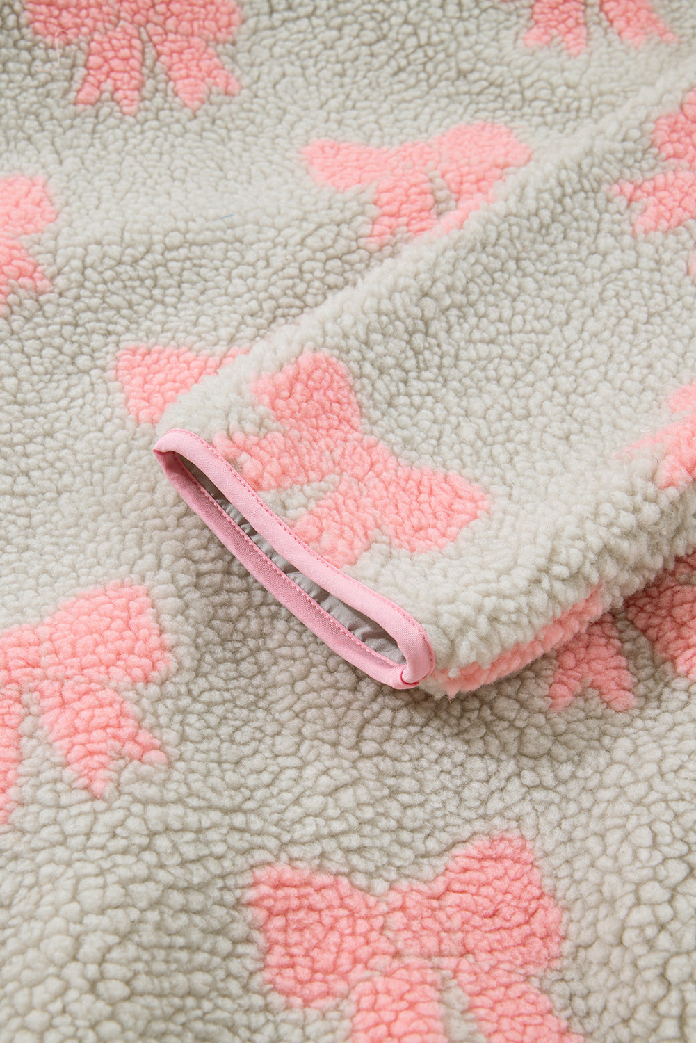 Gray Bow Sherpa Quarter Zip Drop Shoulder Baggy Sweatshirt