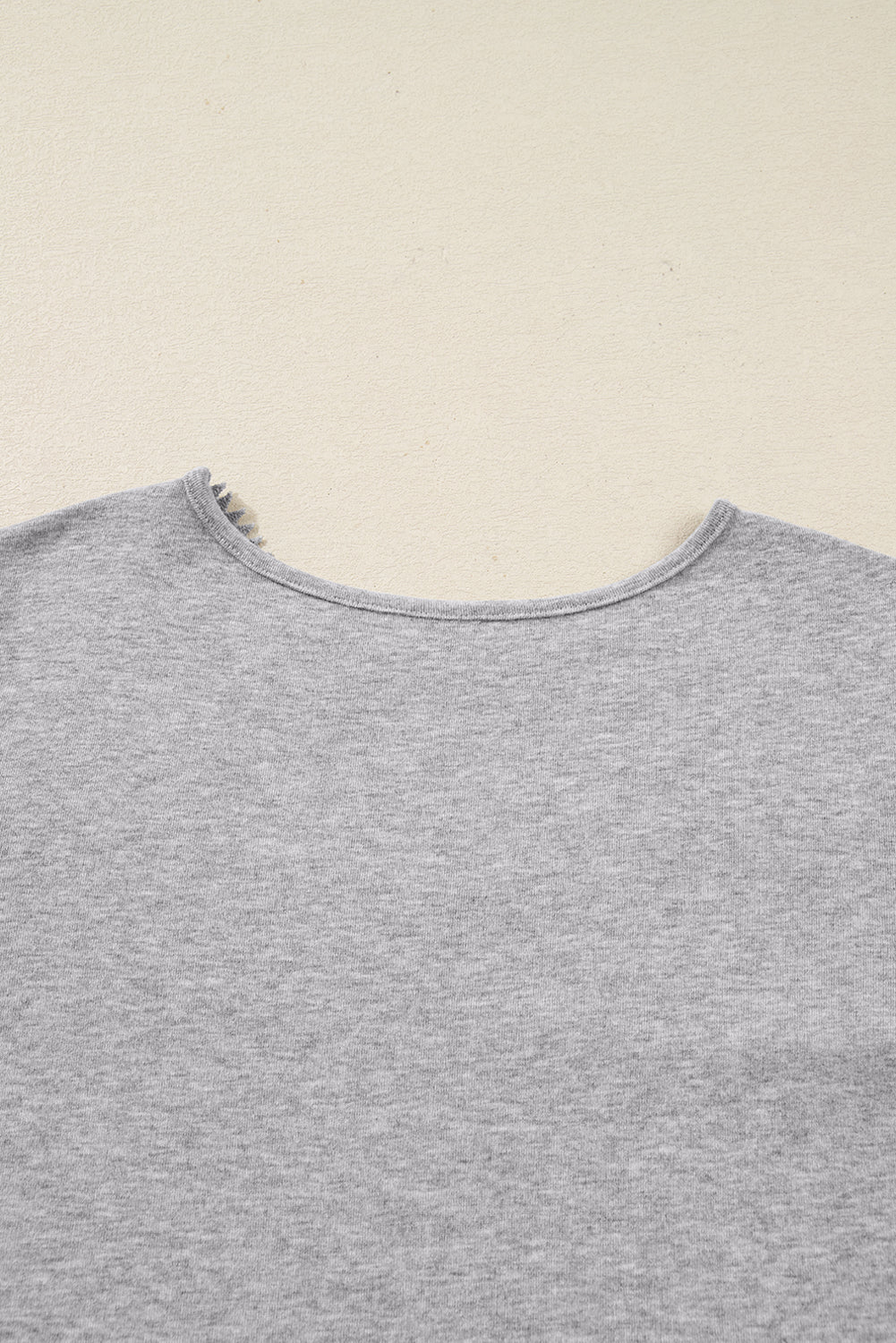 Gray Hollowed Lace Ribbed Knit Long Sleeve Patchwork Top