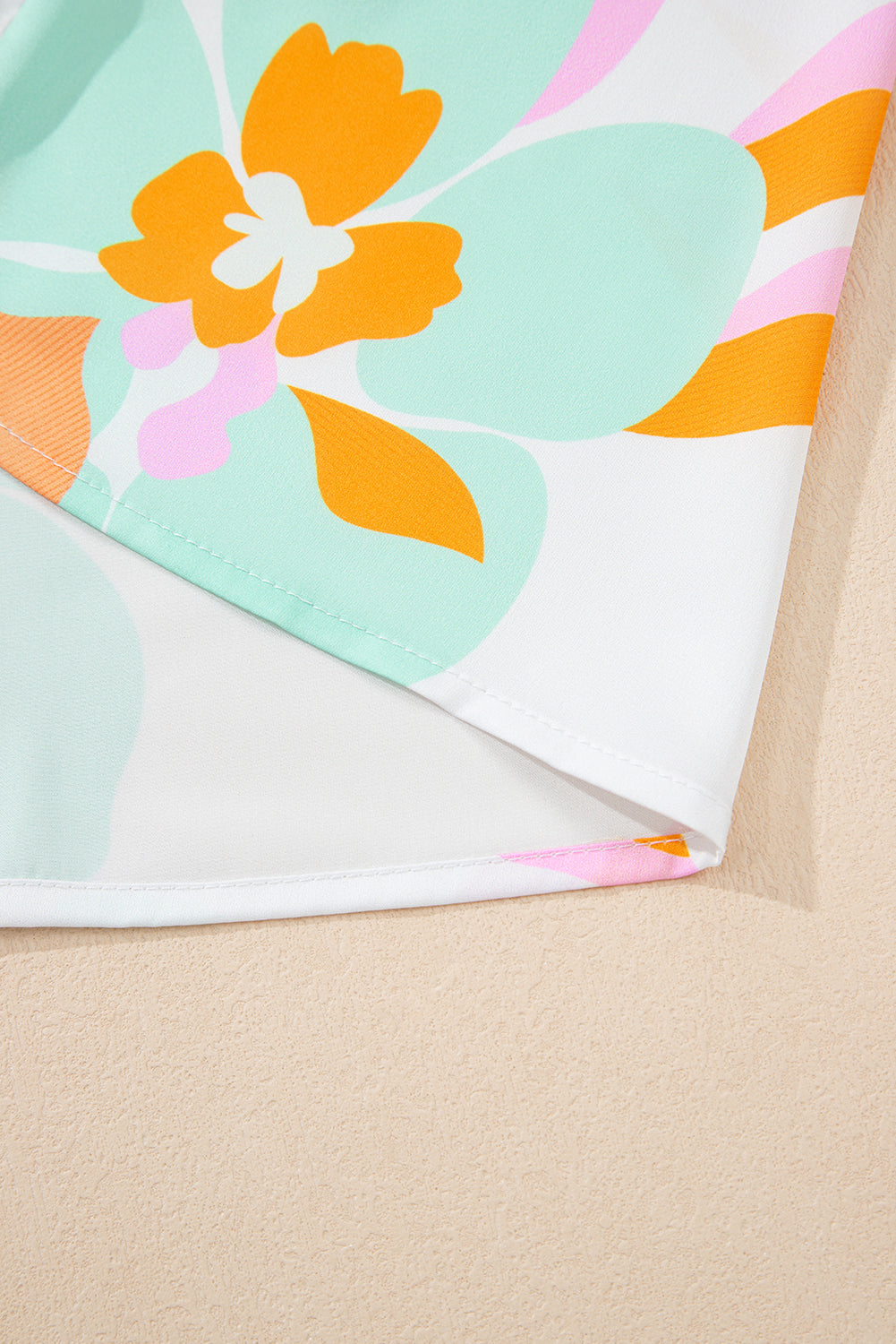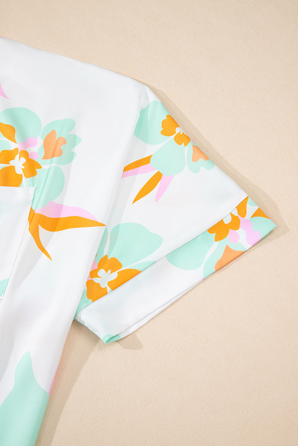 Green Floral Print Loose Fit V Neck Half Sleeve Blouse