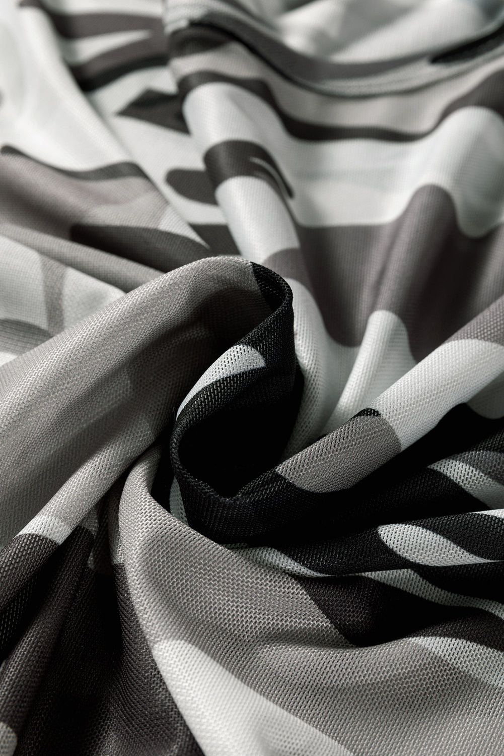 Green Western Fashion Camouflage Print Mesh Long Sleeve Top