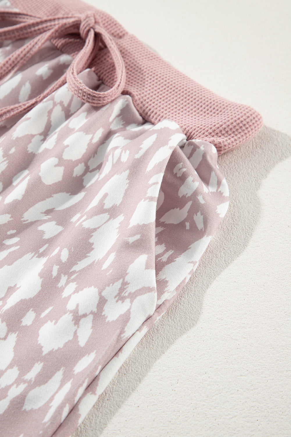 Khaki Classic Leopard Arched Hem Elastic Waistband Casual Shorts