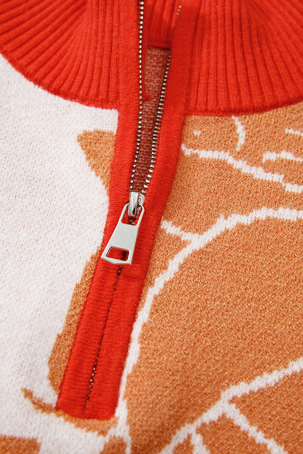 Made with a flower print knit, features a collared neck and drop shoulders.