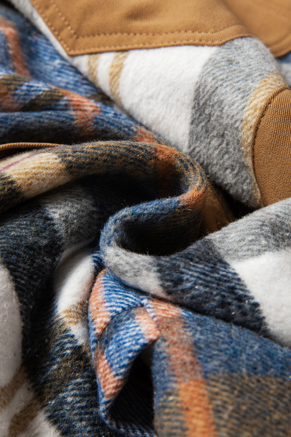 Khaki Plaid Patchwork Long Sleeve Shirt Mini Dress