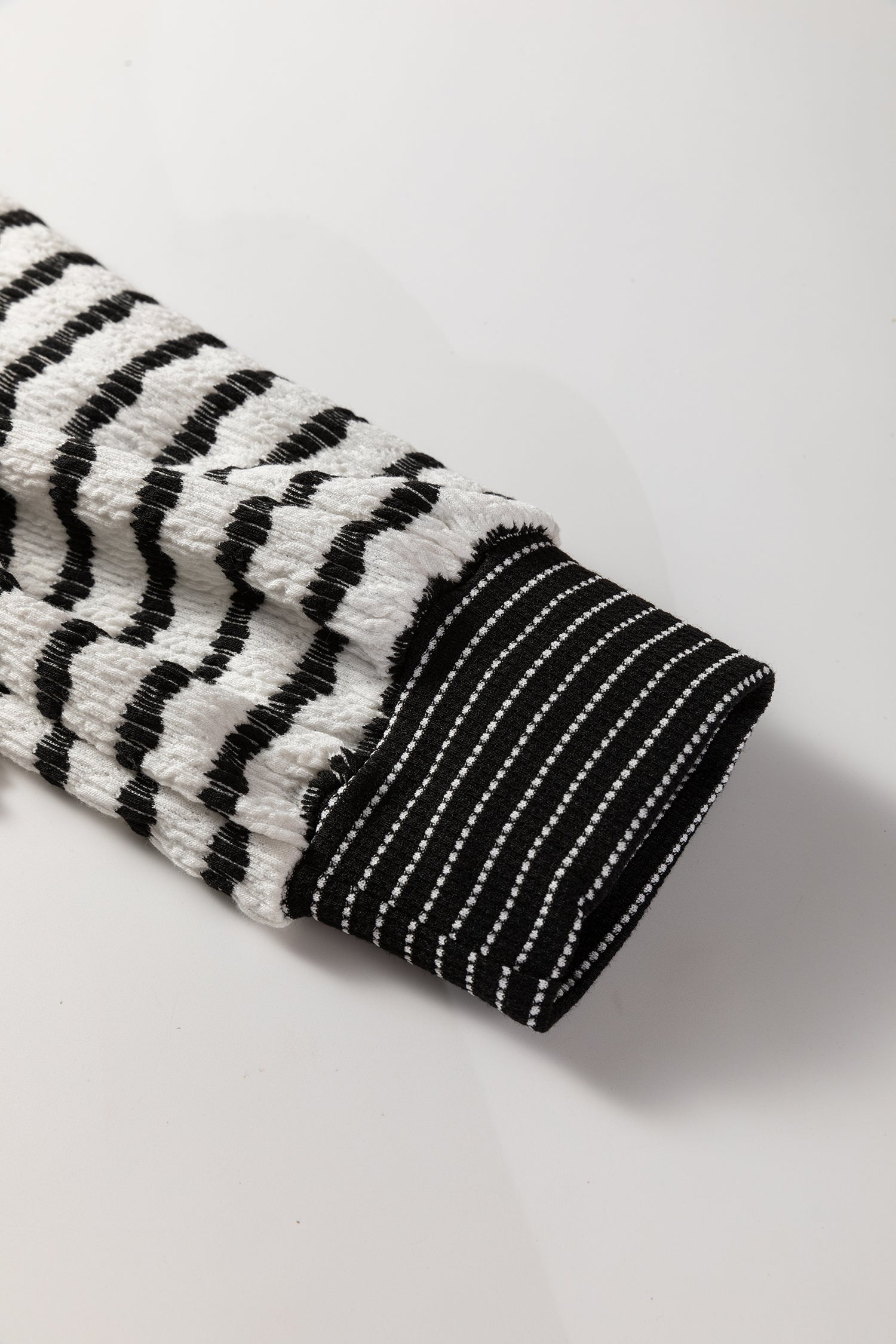 Khaki Stripe Collared Pullover Top and Drawstring Pant Set