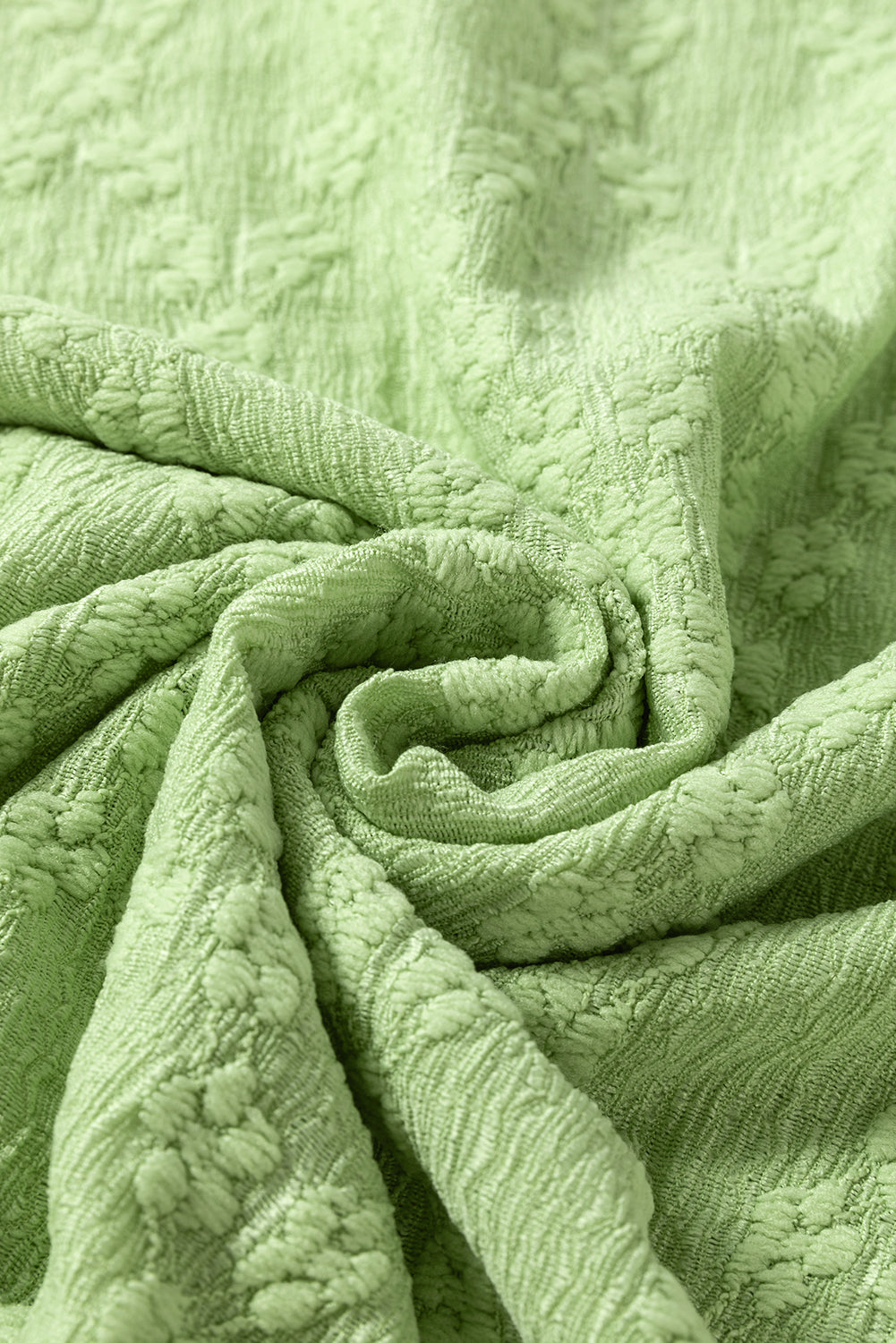 Light Green Solid Color Textured Side Split Crew Neck Blouse