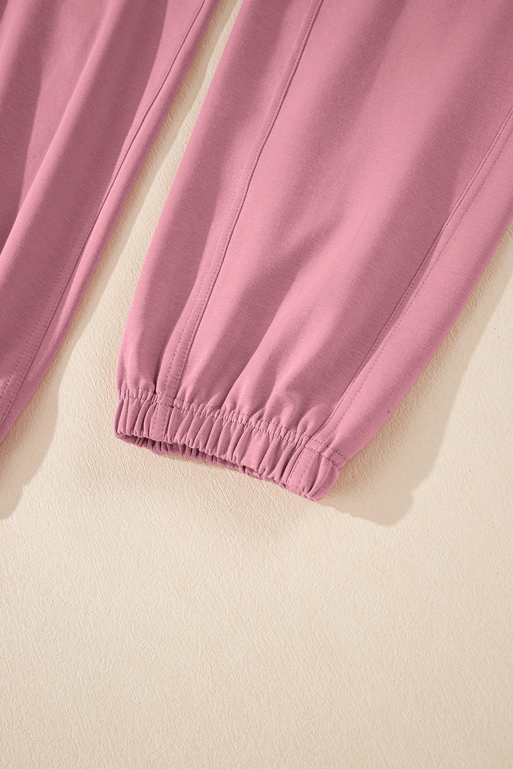Light Pink Lace-up Elastic Waist Sleeveless Square Neck Jumpsuit