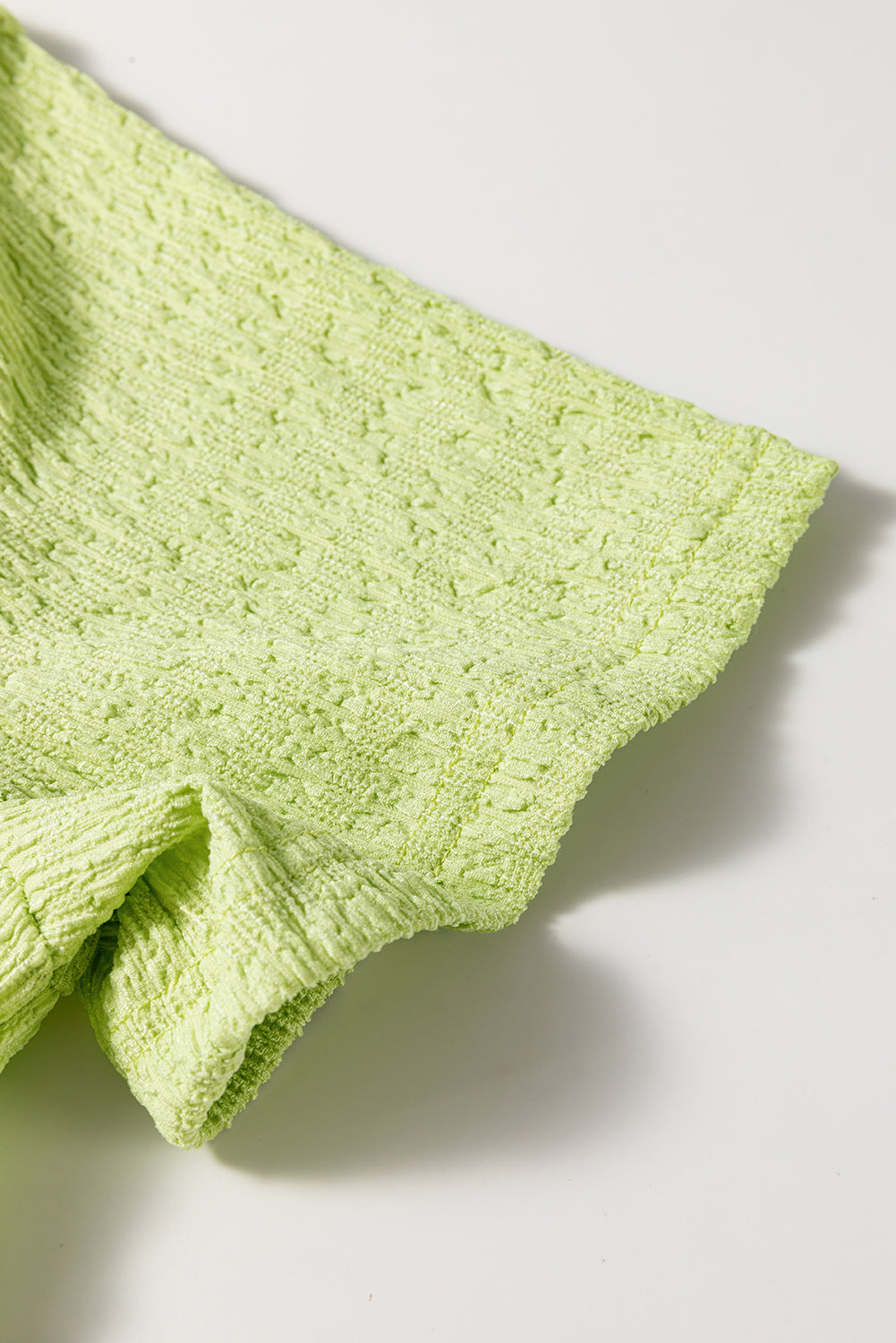 Meadow Mist Green Textured Short Sleeve Patched Pocket Buttoned Shirt Romper