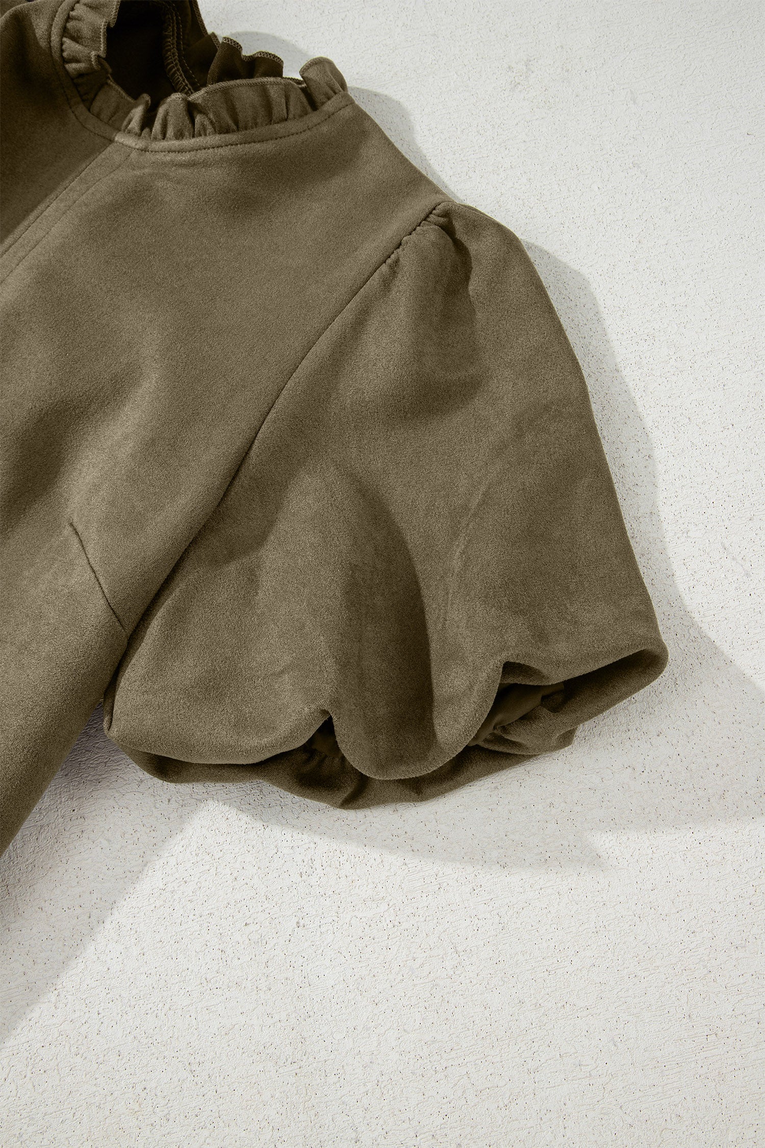 Moss Green Frilled Round Neck Short Puff Sleeve Shift Mini Dress