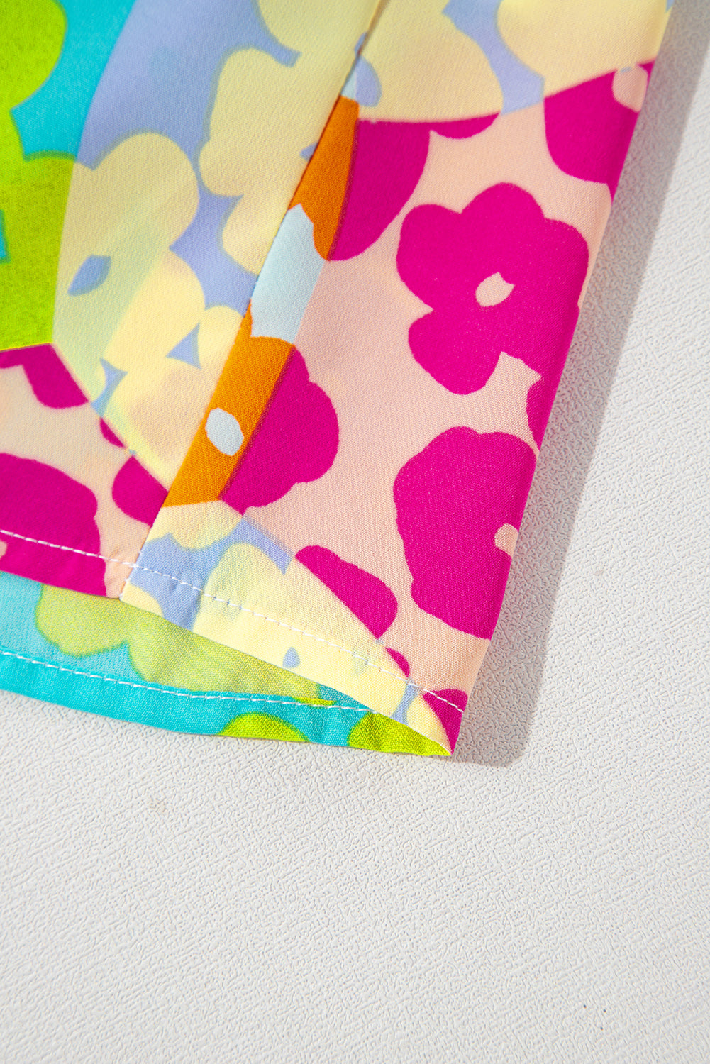 Multicolour Abstract Print Pleated Flutter Sleeve Blouse