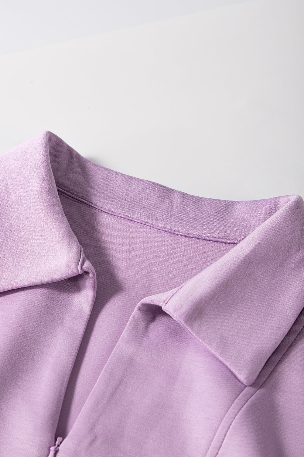 Orchid Bouquet Short Sleeve Zipper Collared Elastic High Waist Romper