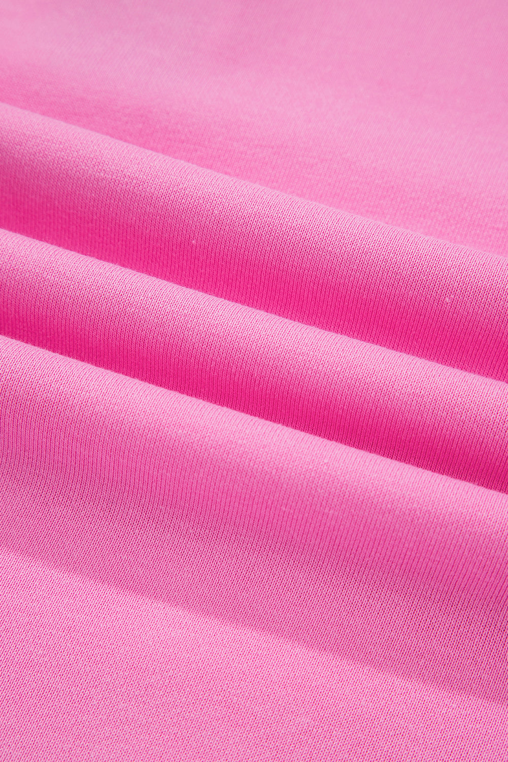 Pink Contrast Striped Collar Patchwork Puff Sleeve Ruffle Hem Mini Dress