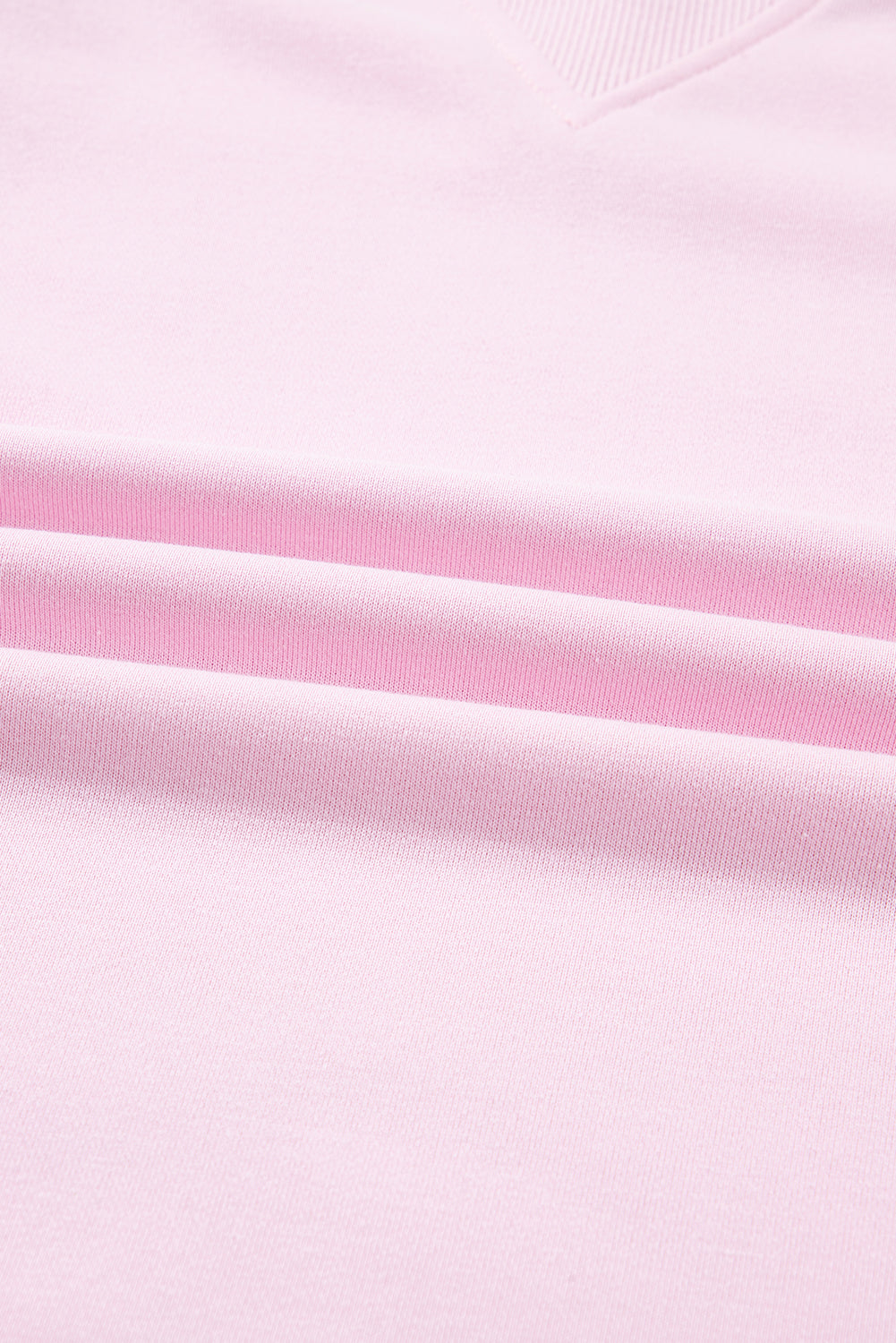 Pink Plus Size Mix Floral Patched Sleeve Ribbed Trim Baggy Sweatshirt