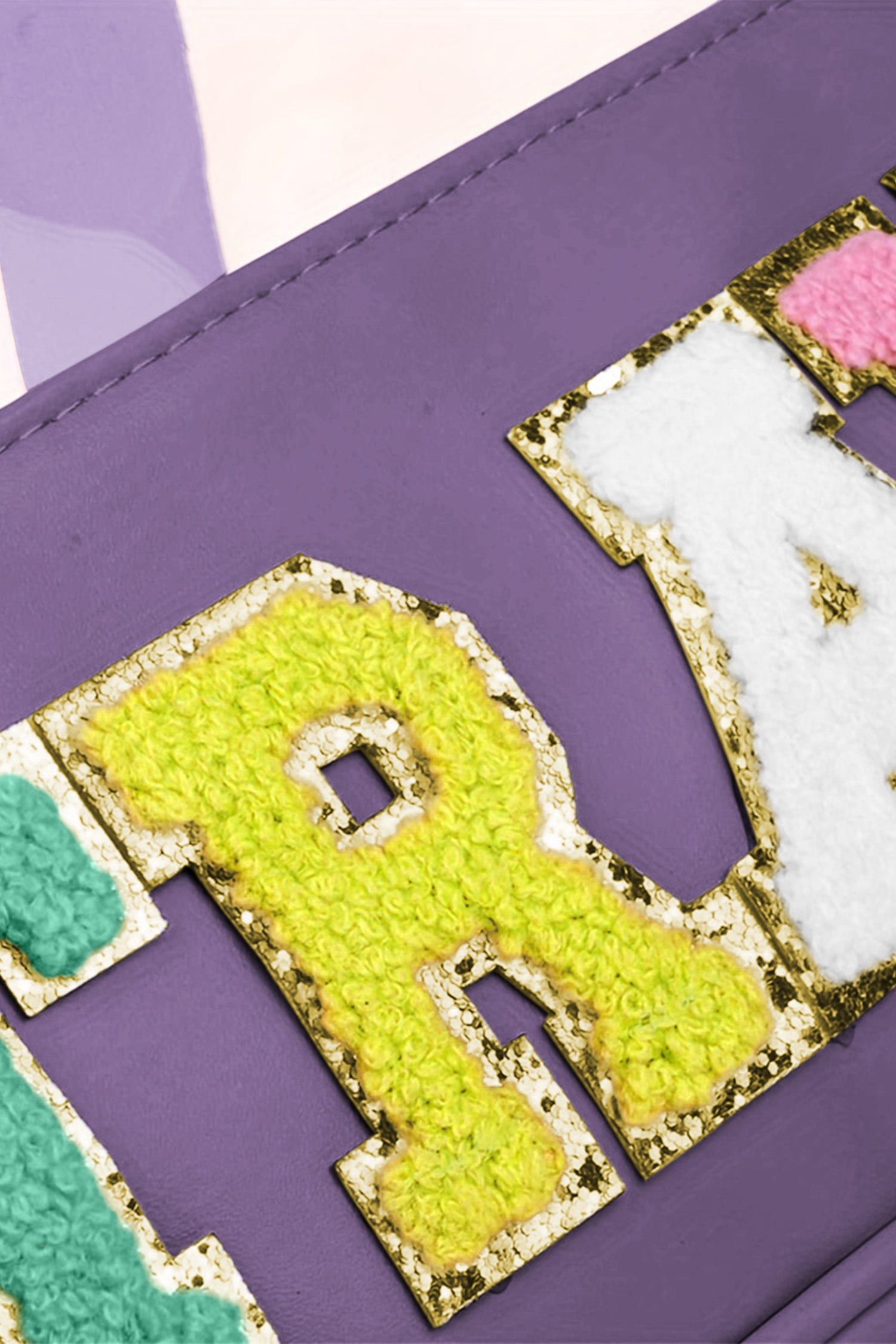 Purple TRAVEL Chenille Letter Clear PVC Makeup Bag