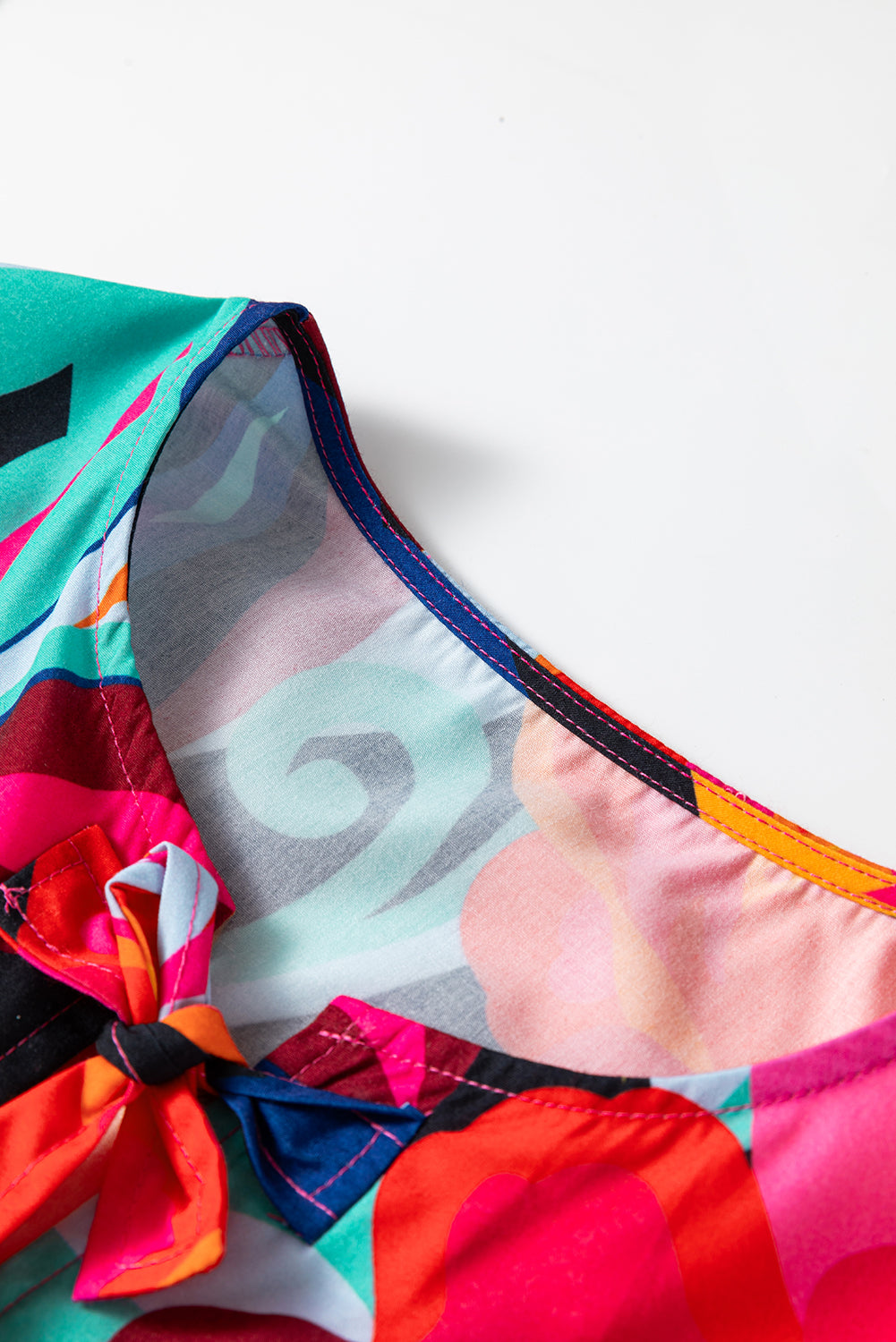 - This vibrant top features a bold and abstract print.