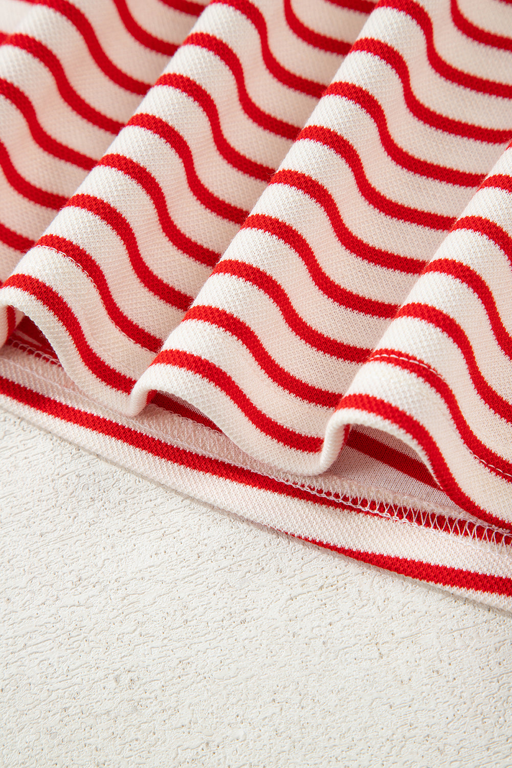Red Stripe Collared V Neck Drop Shoulder Pullover and Skort 2pcs Outfit