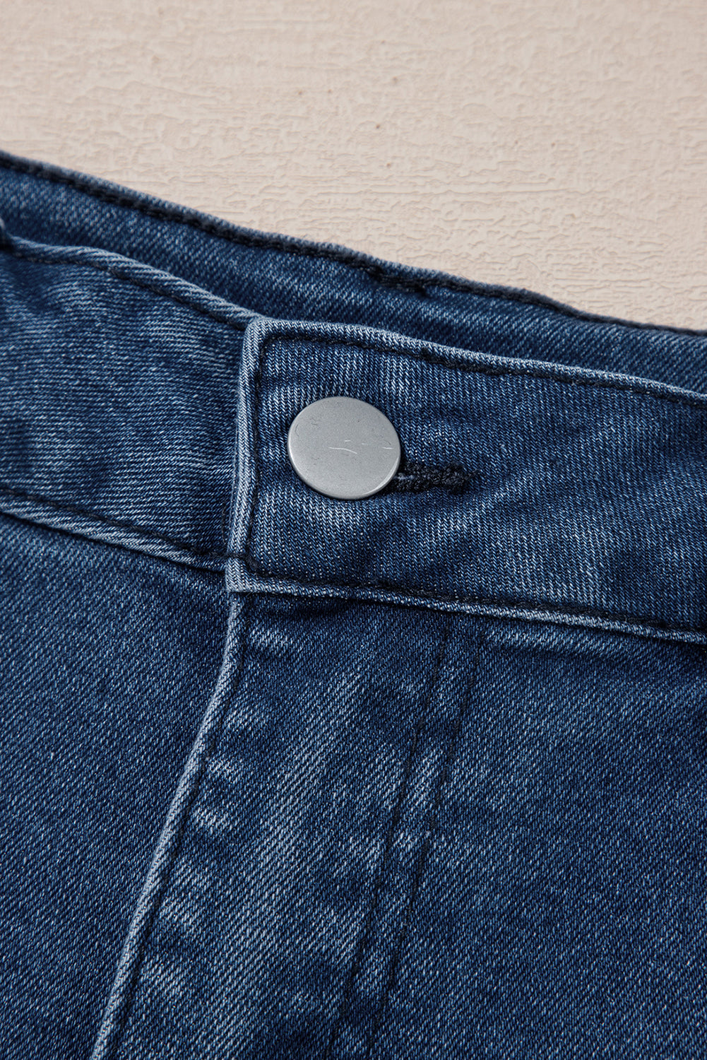 Sail Blue Scalloped Hemline Acid Wash High Waist Denim Shorts
