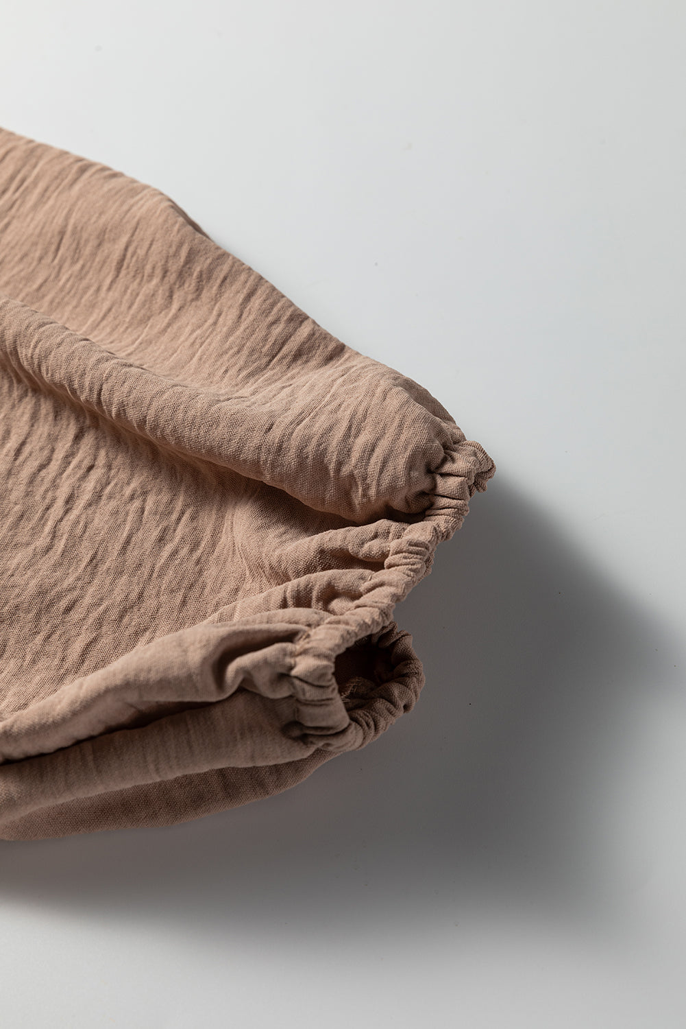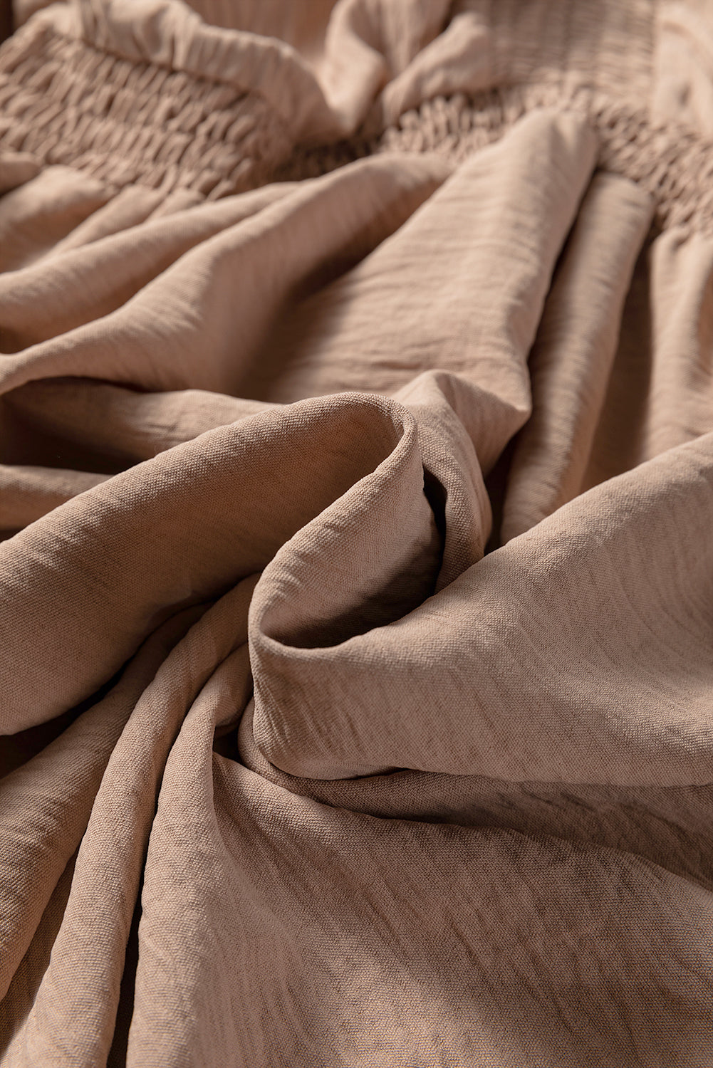 Smocked waist offers a flexible, comfortable fit for all-day wear.