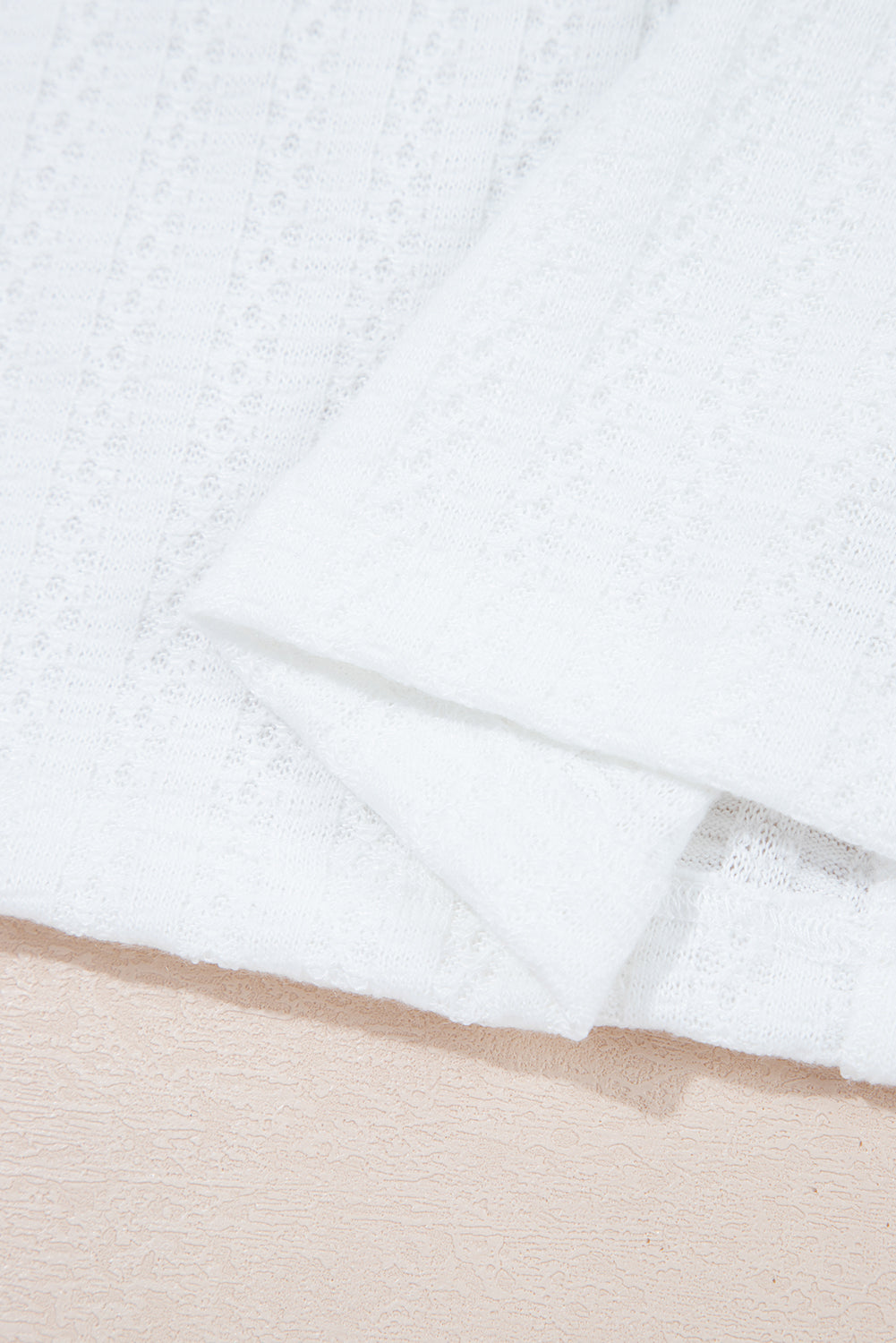 White Textured Hollow Grommet Placket Split Neck Short Sleeve Top