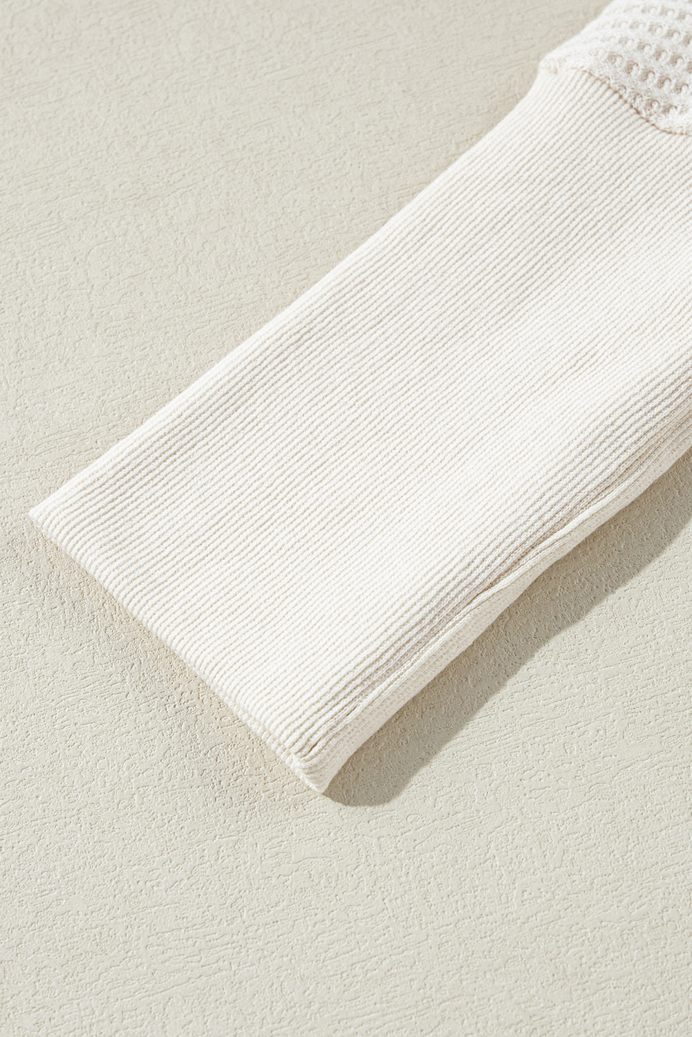 White Waffle Knit Exposed Seam V Neck Oversized Top